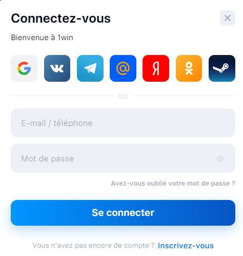 Une étape essentielle de l'interaction avec le casino sera l'autorisation. Une connexion rapide via les réseaux sociaux est disponible pour vous connecter à votre compte. Cette méthode est pertinente pour ceux qui ont choisi la même option lors de l'inscription. Sinon, la connexion 1win s'effectue en saisissant des données personnelles. Pour accéder à votre compte, vous avez besoin de :